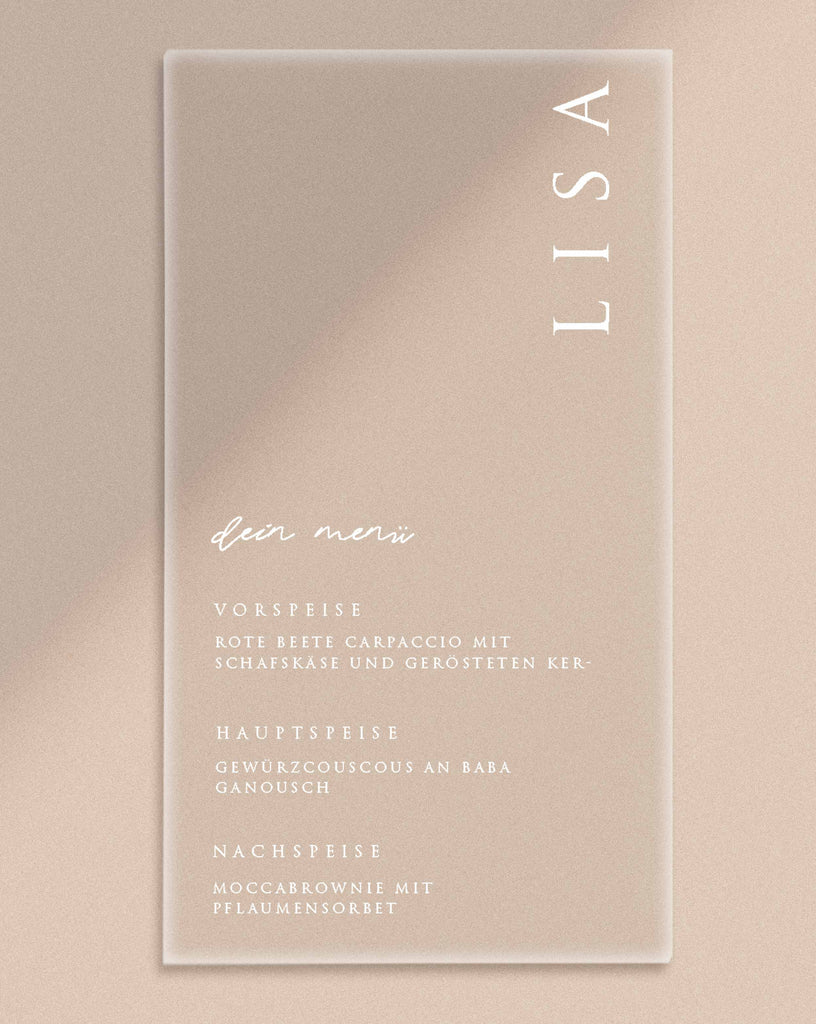 Acryl ( transparent ) Menuekarte Magg